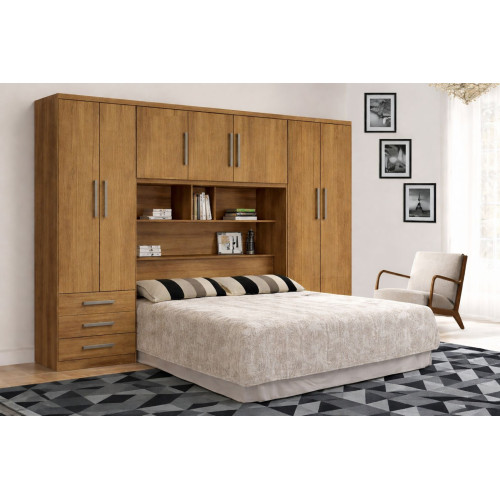 Produzido em MDF e MDP Puxadores em PVC Cabideiros em Aluminío Puxadores em Madeira, 5 Gavetas com corrediças Metálicas Dobradiças Metálicas Cabeceira Baú Possui 7 portas |